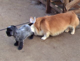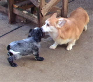 他犬種コーギーとごあいさつ